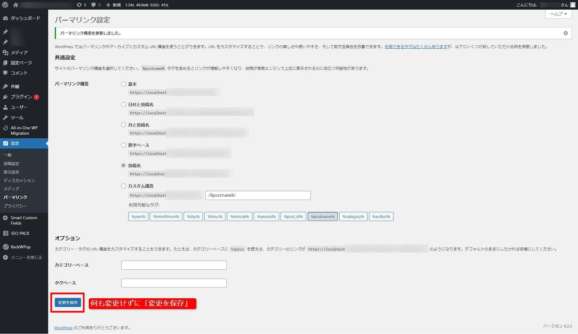 | rewrite | bool,array | カスタム投稿タイプのパーマリンク構造を変更する。 ※変更後に[設定−パーマリンク]で変更の保存をしないと反映されない。 | true(パーマリンクは$post_type/スラッグ) |